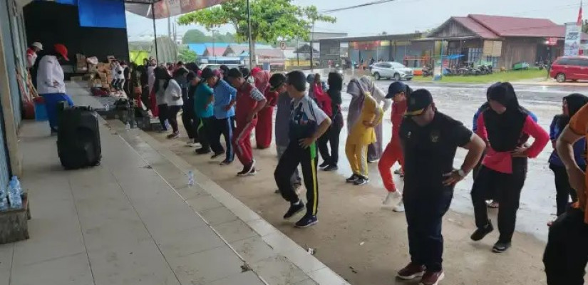 Germas dimulai dengan sesi senam bersama, makan buah bersama, dan cek kesehatan. Meskipun hujan deras turun, antusiasme peserta senam tetap tinggi. Mereka berkumpul di pelataran toko warga di depan Hotel Sam Nur, Kecamatan Muara Wahau, pada hari Senin (5/6/2023).