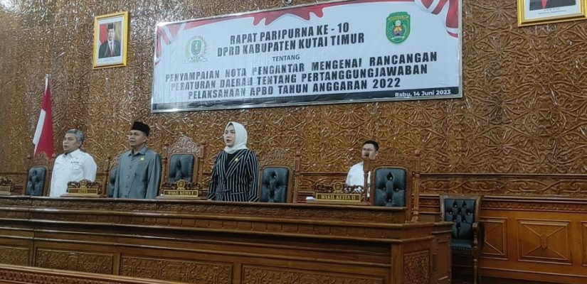 Kutim Afiliasi.net - Dewan Perwakilan Rakyat Daerah (DPRD) Kabupaten Kutai Timur (Kutim) menggelar rapat paripurna dengan agenda “Penyampaian Nota Pengantar Rancangan Peraturan Daerah (Raperda) Tentang Pertanggungjawaban Pelaksanaan APBD Tahun Anggaran 2022”, di Ruang Sidang Utama DPRD Kutim, Rabu (14/06/2023).