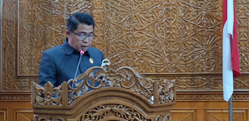 Anggota Fraksi Demokrat DPRD Kutim Muhammad Amin saat menyampaikan pandangan umum Fraksinya.
