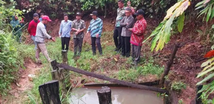 Bupati Ardiansyah bersama rombongan saat meninjau lokasi sumur sumber air bersih warga RT 18 Singa Geweh. (istimewa)