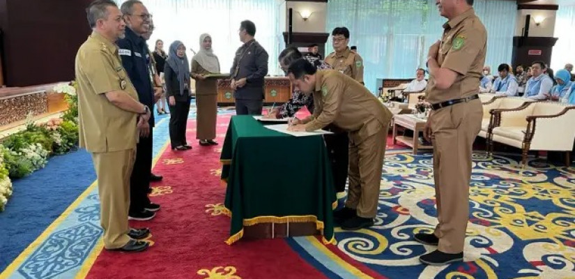 Seskab Kutim Rizali Hadi menghadiri kegiatan penandatanganan komitmen dalam pencegahan anti korupsi di lingkungan pemerintah daerah dan Pengukuhan PAKSI Provinsi Kaltim. (istiemewa)