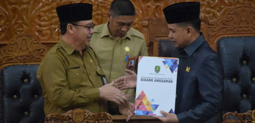 Asisten Pemerintahan dan Kesejahteraan Rakyat, Poniso Suryo Renggono (Kiri), mewakili bupati pada sidang paripurna ke-23 DPRD Kutim, Senin (7/8/2023). (Ist)