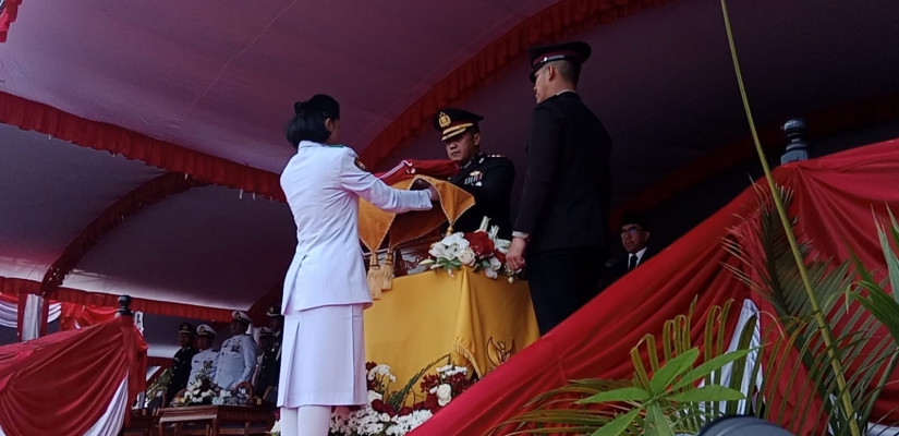 Upacara berlangsung dengan khidmat. Di mana Pasukan Pengibar Bendera (Paskibraka) berhasil menurunkan bendera dengan sukses.