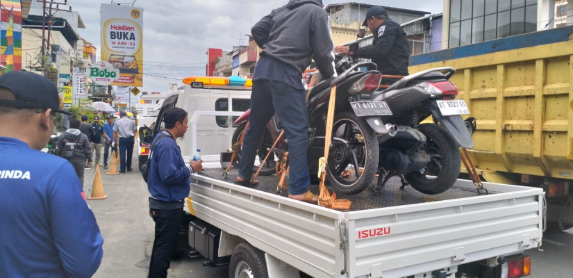 "Pelanggaran motor yang parkir sembarangan akan kami tindak dengan menowing kendaraan dan dibawa ke Dishub," kata Manalu.
