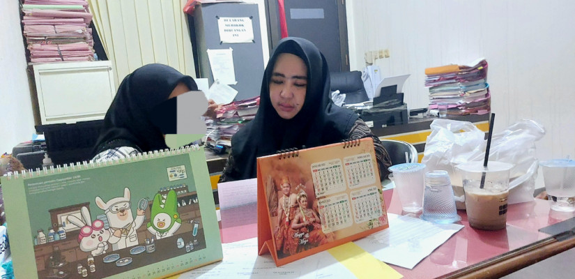 Korban (hem kotak-kotak) saat didampingi Ketua TRC PPA Kaltim Rina Zainun (baju batik) saat menghadiri BAP di Mapolresta Samarinda, Jumat (8/9/2023)