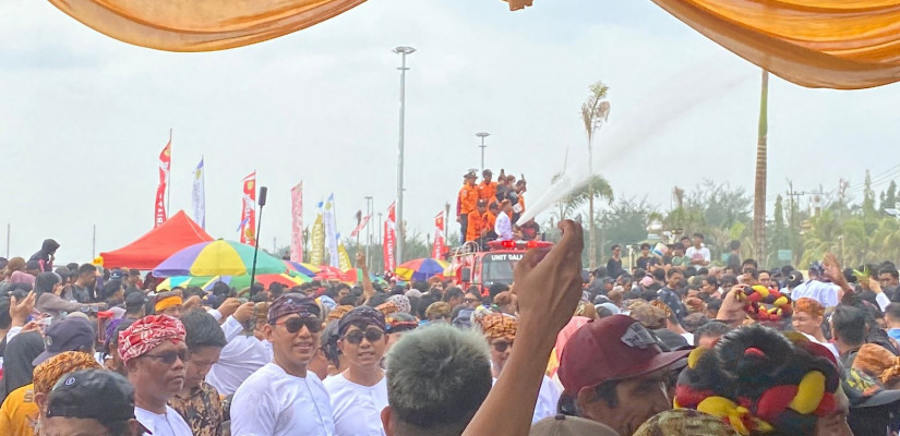 Masyarakat yang antusias mengikuti belimbur pun mulai saling menyiram satu sama lain menggunakan air. Bersamaan sejumlah petugas pemadam kebakaran ikut menyemprotkan air dari atas kendaraan.