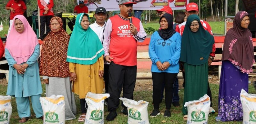 Suasana penyaluran bantuan pangan di Kelurahan Bukit Biru, yang dilakukan langsung oleh Bupati Kukar, Edi Damansyah (Istimewa)