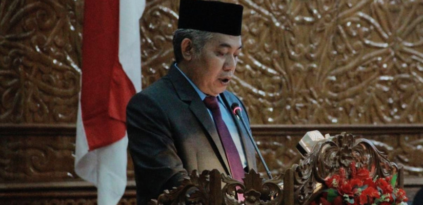 Zubair saat menyampaikan jawaban kepala daerah atas pandangan umum fraksi-fraksi DPRD Kutim terhadap R-APBD Kutim 2024.(ist)