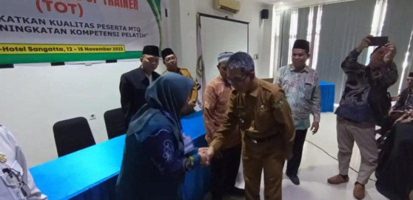 Sangatta, Afiliasi.net - Bupati Kutai Timur (Kutim) Ardiansyah Sulaiman membuka kegiatan Training Of Trainer (TOT) garapan Lembaga Pengembangan Tilawatil Qur'an (LPTQ) Kutim yang digelar di Q Hotel, Sangatta Utara, Senin (13/11/2023). Kegiatan ini bertujuan untuk meningkatkan kompetensi para pelatih dalam upaya meningkatkan kualitas peserta Musabaqah Tilawatil Qur'an (MTQ).
