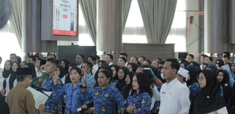 Suasana pelantikan dan pengambilan sumpah/janji 586 Aparatur Sipil Negara (ASN) dan 84 Pegawai Pemerintah dengan Perjanjian Kerja (PPPK) di lingkup Pemkab Kutim. (ist)