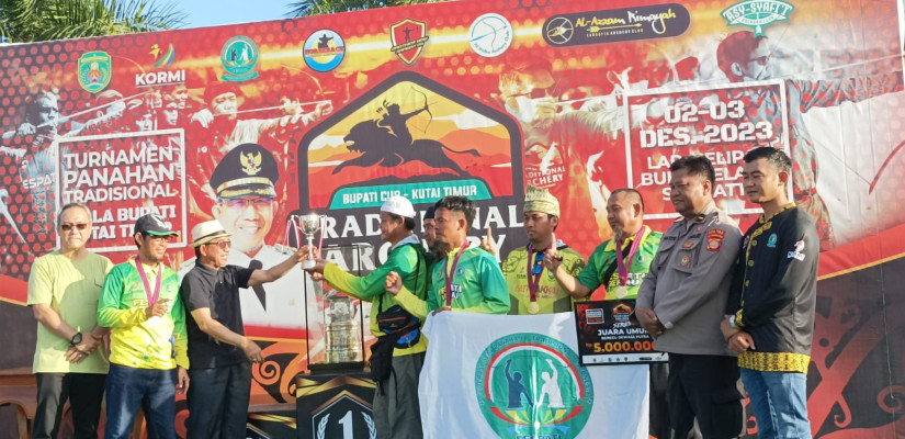 Kutim, Afiliasi.net - Kompetisi olahraga panahan tradisional, Traditional Archery Tournament (TAT) Bupati Cup II Kutim 2023, menyaksikan Federasi Seni Panahan Tradisional Indonesia (Fespati) Berau meraih prestasi sebagai juara umum. Bupati Kutim, Ardiansyah Sulaiman, secara resmi menutup kegiatan ini di Lapangan Helipad, Pusat Perkantoran Bukit Pelangi, pada Minggu (03/12/2023) sore.