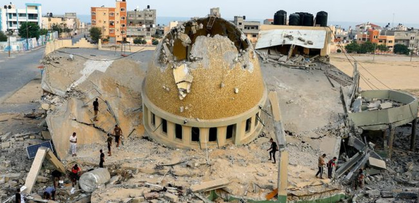 Masjid di Gaza yang hancur akibat serangan udara Israel. (Foto: Reuters/Ibraheem Abu Mustafa)