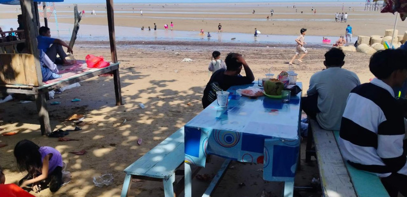 Pada hari kedua libur lebaran saja, jumlah kunjungan ke pantai yang dilengkapi dengan gazobo dan jembatan yang menjorok ke arah laut tersebut sudah mencapi 2.168 orang.