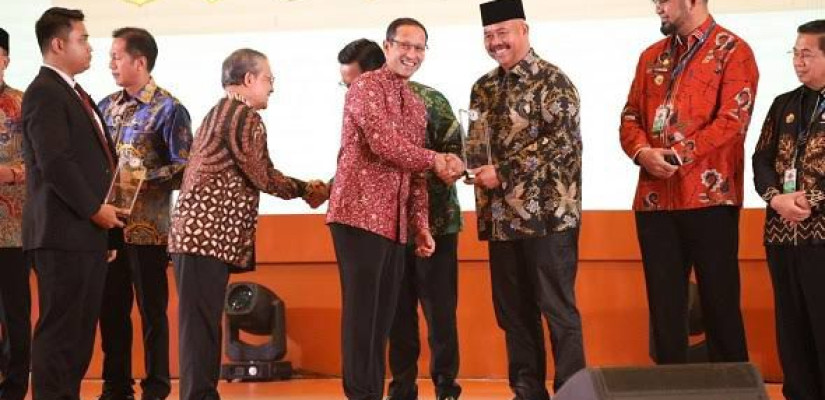 Bupati Kukar, Edi Damansyah saat menerima pengharggan dari Mentri Dikbudristek, Nadiem Makarim (Istimewa)