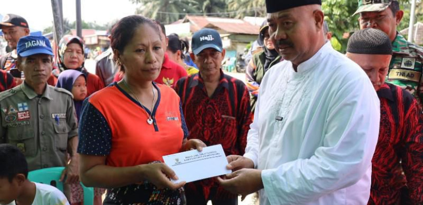 Bupati Kukar, Edi Damansyah saat menyerahkan bantuan kepada warga terdampak kebakaran di Kelurahan Jahab, Kecamatan Tenggarong. (Ist)