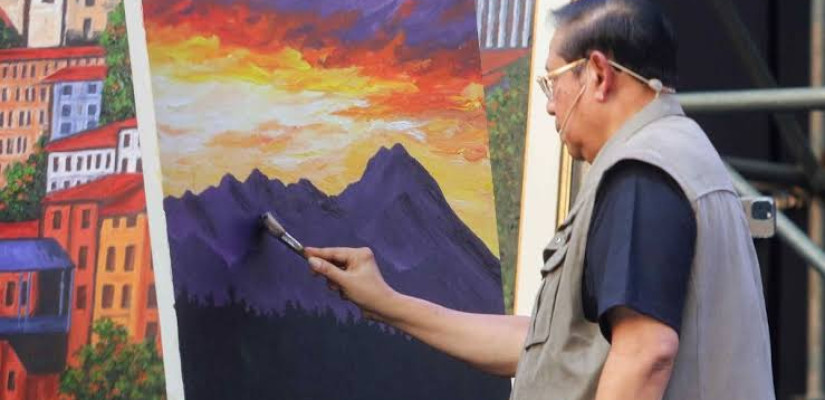 Afiliasi.net - Presiden Keenam RI, Susilo Bambang Yudhoyono (SBY), turut memeriahkan hari terakhir festival musik Pestapora di Gambir Expo, Kemayoran, Jakarta Pusat, Minggu (22/9/2024). Bersama duo presenter Vincent dan Desta dari Vindes, SBY menampilkan kemampuannya dalam seni melukis di hadapan para penonton.