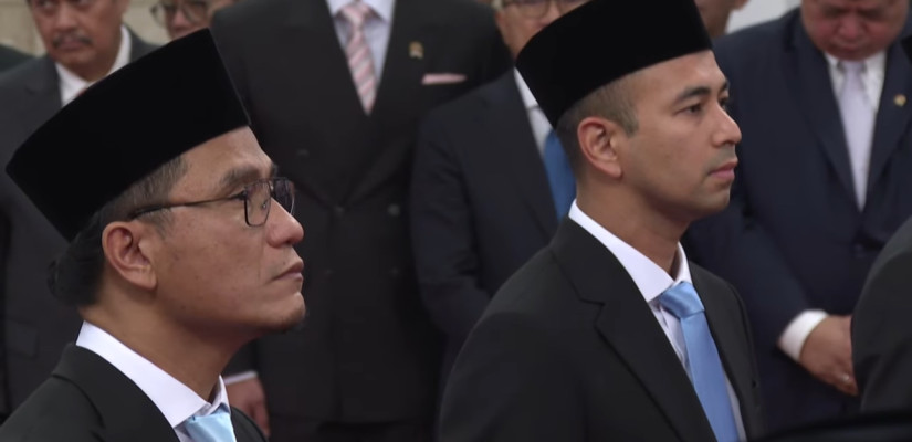 Raffi Ahmad tampak hadir mengenakan setelan jas, dasi biru, dan peci hitam. Dalam pelantikan tersebut, Deputi Bidang Administrasi Aparatur Kementerian Sekretariat Negara menyebutkan, “Dr. (HC.) H. Raffi Farid Ahmad sebagai Utusan Khusus Presiden Bidang Pembinaan Generasi Muda dan Pekerja Seni.”