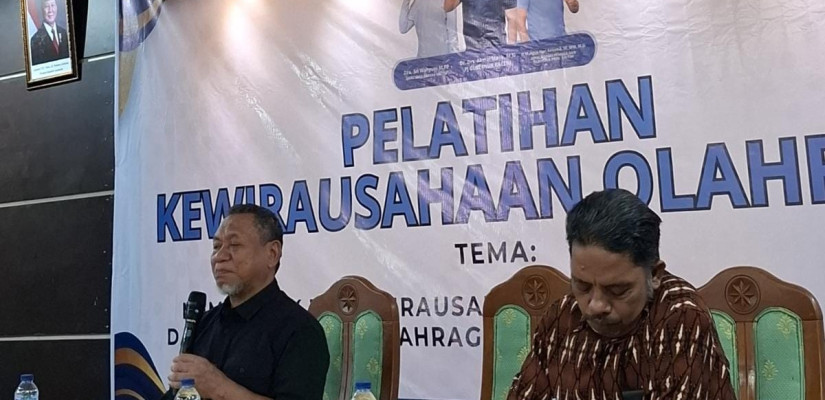 Dalam sesi pelatihan, Wakil Ketua I KONI Kaltim, Ego Arifin, menyampaikan pentingnya kewirausahaan sebagai bekal masa depan.