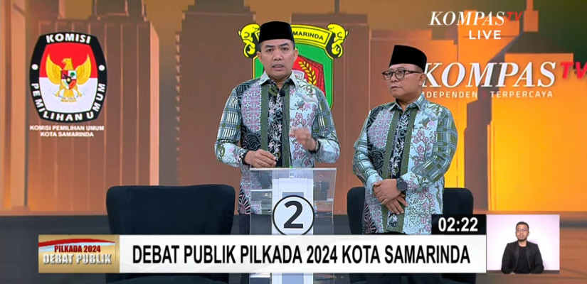 Calon walikota dan calon wakil walikota Samarinda Andi Harun-Saefuddin Zuhri dalam debat perdana Pilkada 2024 (tangkapan layar youtube Kompastv)