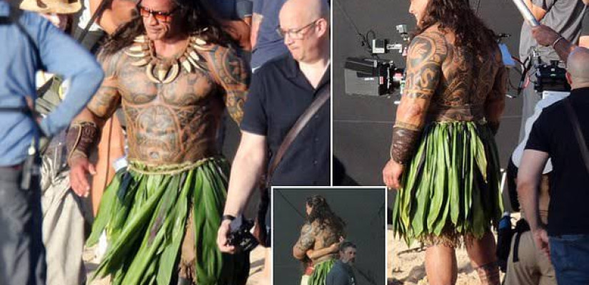 “Kami syuting di luar, dan ketika foto-foto itu bocor, saya langsung berpikir, ‘Sial, kami ketahuan,’” ujarnya, merujuk pada foto dirinya mengenakan pakaian tradisional Hawaii di lokasi syuting pada 20 November. Foto tersebut menunjukkan Dwayne bertelanjang dada, memamerkan tato suku, dan mengenakan rok rumput.