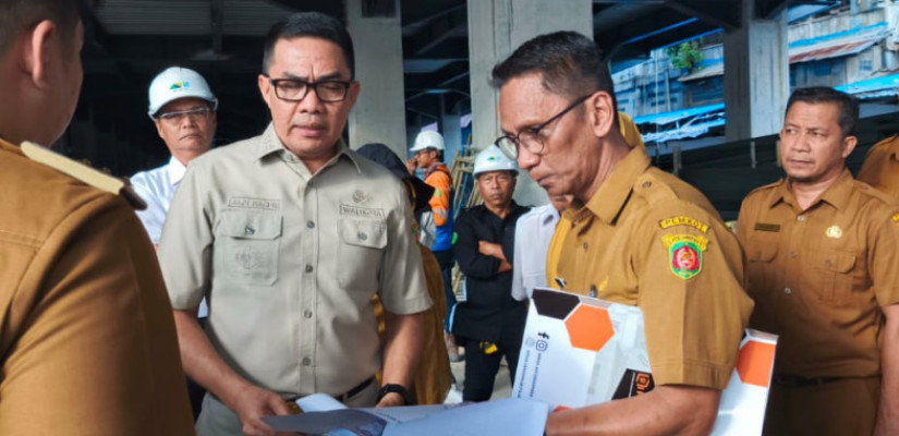 Walikota Samarinda,Andi Harun saat meninjau proyek pasar pagi (gio)