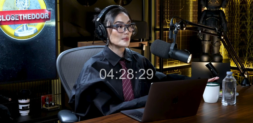 Tangkapan layar dari siaran podcast close the door saat Agnez Mo memberikan tanggapan soal kisruh hak cipta