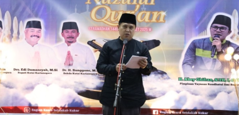 Tenggarong, Afiliasi.net - Dalam rangka memperingati malam Nuzulul Quran 1446 H, Kepala Bagian Kesejahteraan Rakyat (Kabag Kesra) Setdakab Kutai Kartanegara (Kukar), Dendi Irwan Fahriza, menghadiri acara peringatan yang digelar di Masjid Agung Sultan Sulaiman, Tenggarong, Senin (17/3/2025).