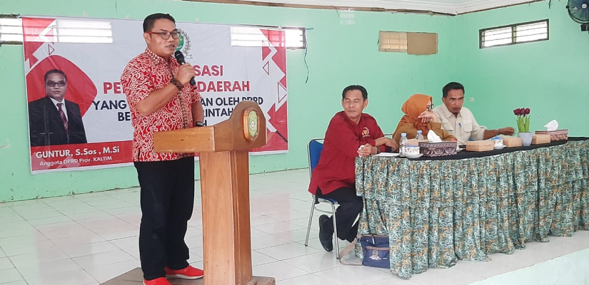 Anggota DPRD Kalimantan Timur, Guntur saat Sosialisasi Peraturan Daerah (Sosper) tentang Penyelenggaraan Pendidikan Pancasila dan Wawasan Kebangsaan di Desa Loa Duri. (Dok)
