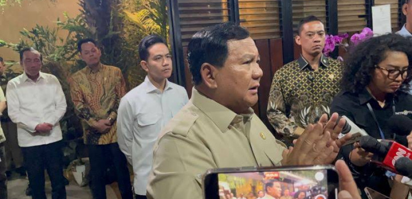 Momen saat Presiden Prabowo konfrensi pers setelah pertemuan dengan Presiden Ke-7 Jokowi di kediamannya (net)