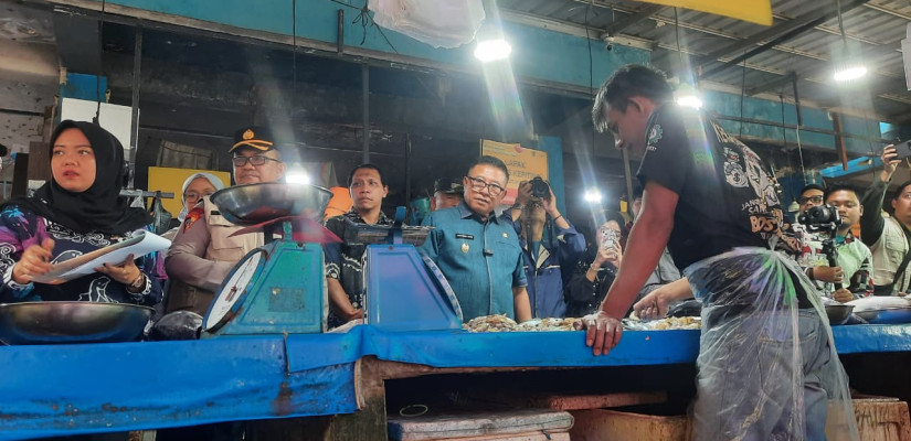 Wawali Saefuddin Zuhri saat berbicara dengan penjual ikan di Pasar Segiri. (Istimewa)