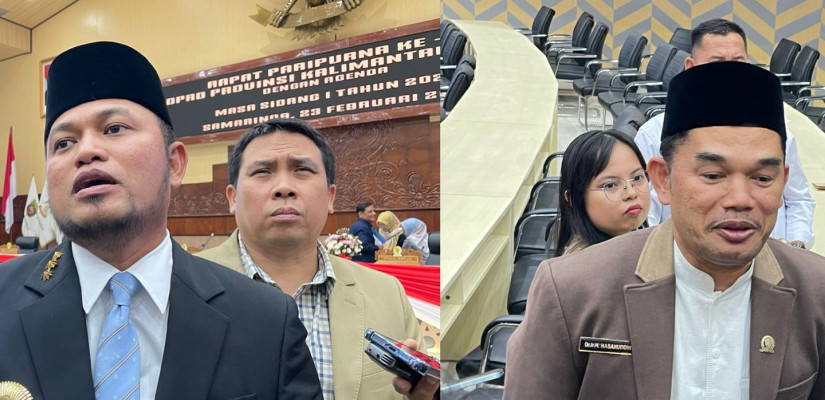 Gubernur Kaltim, Rudy Masud (Kiri) dan Ketua DPRD Kaltim Hasanuddin Mas’ud (kanan) saat dimintai pendapat mengenai fungsi mobil dinas Gubernur. (Istimew)